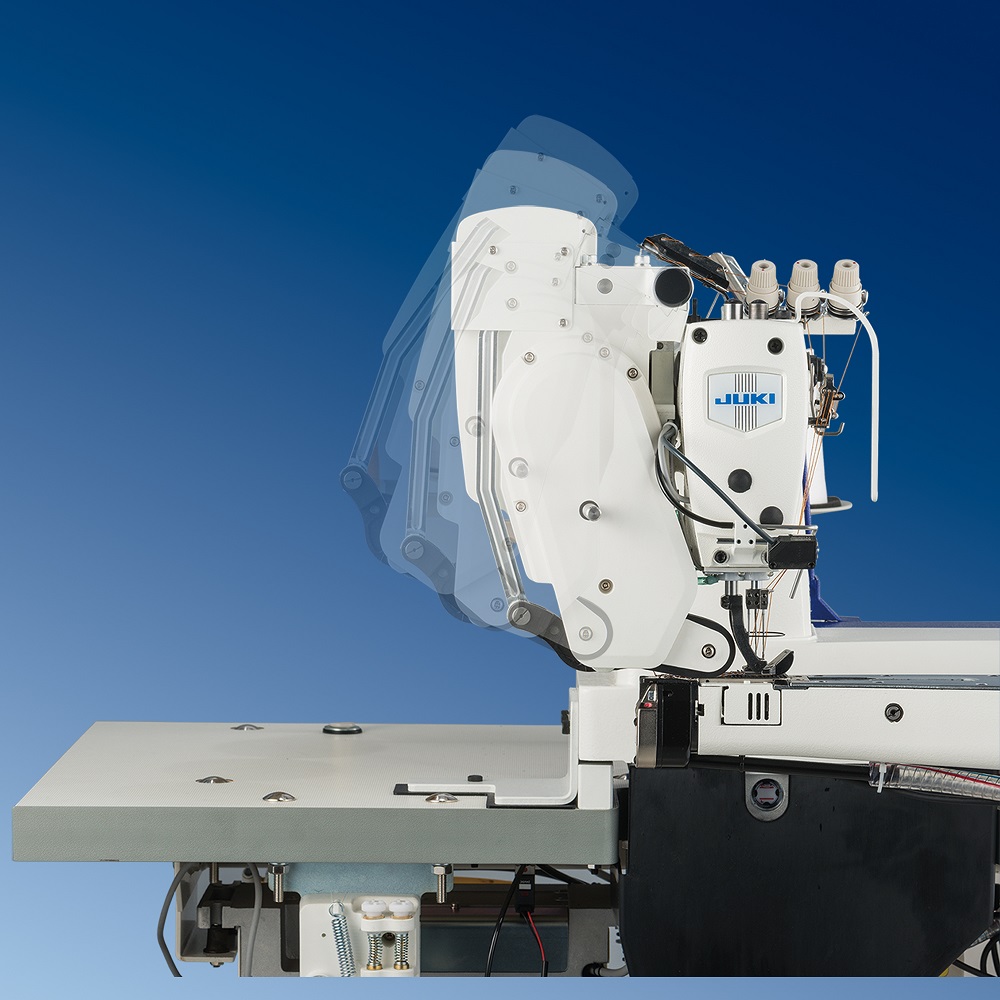 Thông qua các cải tiến đối với việc giảm thiểu khả năng uốn cong bằng cách giảm lượng cấp liệu khi kim xuyên qua vật liệu. Kết quả là, sợi chỉ trên được giữ lại một cách an toàn để đảm bảo sự hình thành vòng lặp ổn định, do đó cho phép móc chỉ bắt được sợi chỉ và tạo ra các đường may mà không bị lỗi. Ngoài ra, bộ bảo vệ kim di chuyển ngược giúp cho vật liệu dày được may trơn tru, ngăn ngừa bỏ mũi