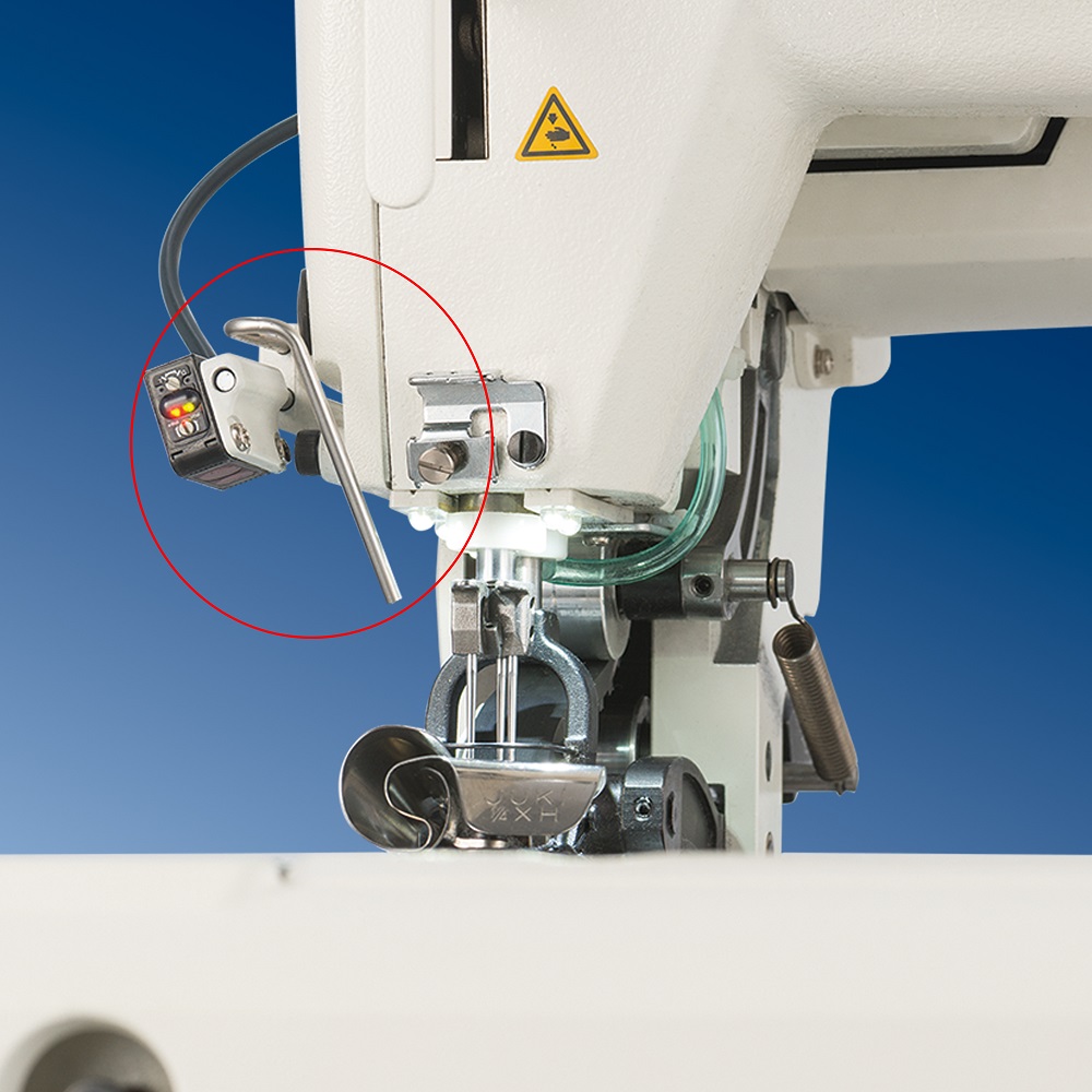 Máy được cung cấp theo tiêu chuẩn với chức năng điều khiển áp suất chân máy nén bao gồm cảm biến vật liệu lớp. Điều này kết hợp với máy kéo vải kỹ thuật số dây đai, cho phép cài đặt kỹ thuật số áp lực chân máy ép đai và chiều dài cấp liệu, máy may đạt được các đường may hoàn hảo.