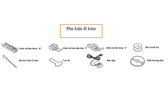 Được kèm theo nhiều phụ kiện như chân vịt làm khuy, chân vịt vào dây kéo, chân vịt đa năng, bộ 4 suốt chỉ, bộ 3 kim may, tua vít, bàn đạp, DVD hướng dẫn sẽ hỗ trợ tối đa cho bạn may quần áo được dễ dàng, nhanh chóng ngay cả khi mới học may. |